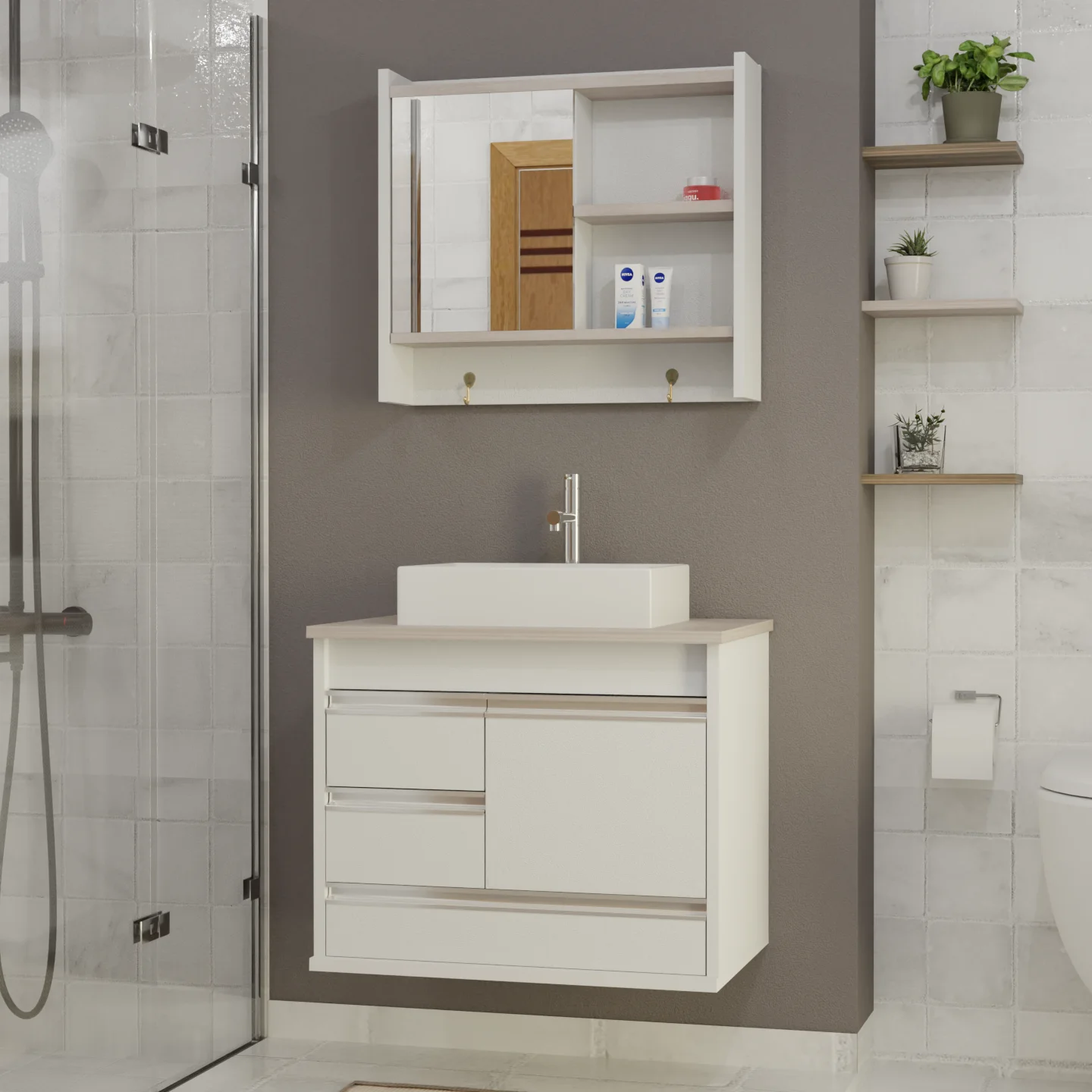 Escolha o Gabinete Arezzo e transforme seu banheiro em um ambiente moderno e organizado!