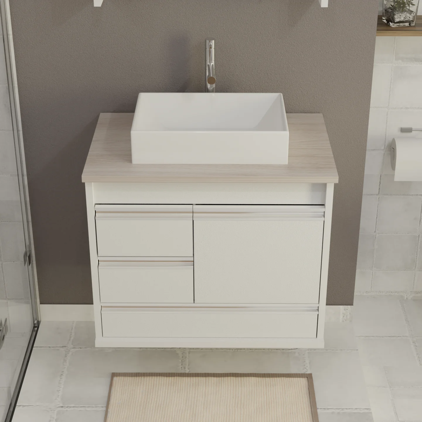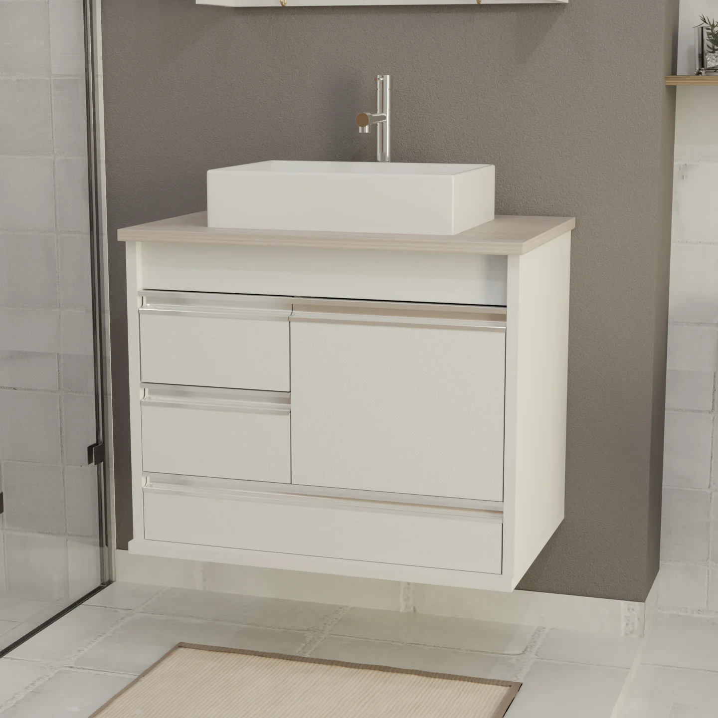 Armário de Banheiro Arezzo Suspenso com Gavetas – Acabamento Fosco e Design Moderno
