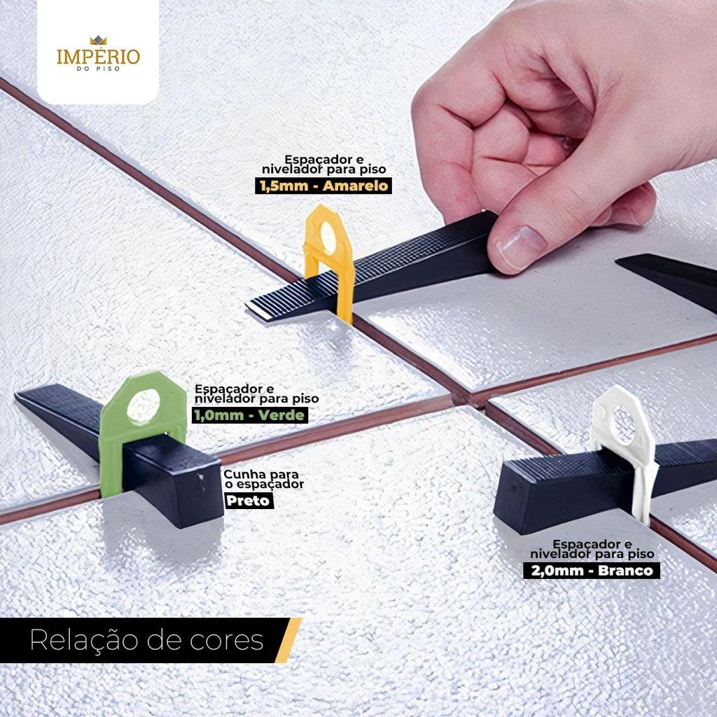 Utilizado como espaçador e nivelador para piso porcelanato e cerâmico. Depois de passar a massa, inserir o nivelador por baixo do porcelanato e/ou cerâmica nos quatro lados da peça e, em seguida, a cunha no nivelador para começar a nivelar as peças. O uso desses materiais ajuda reduzir a aplicação em até 50%.